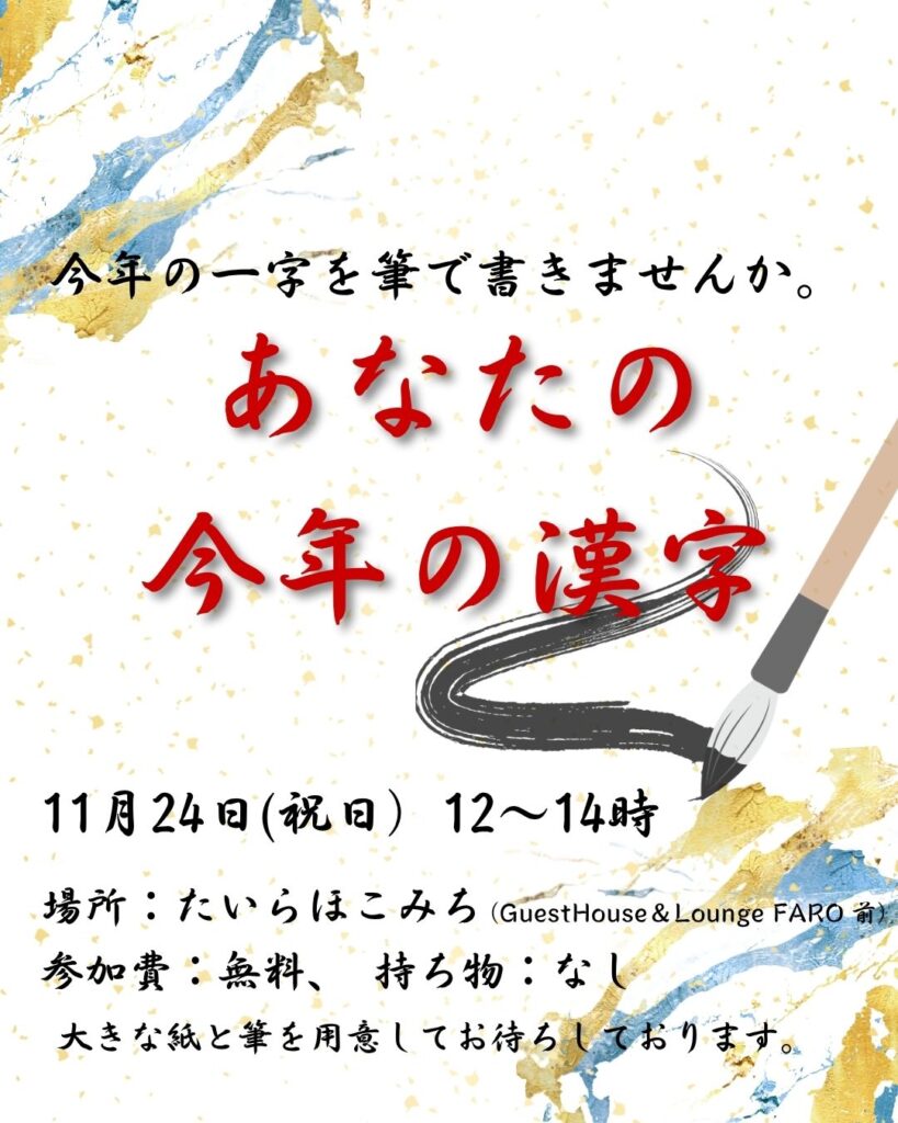 今回、ほこみちでは、その一文字を“筆で大きく書く”企画を開催します。